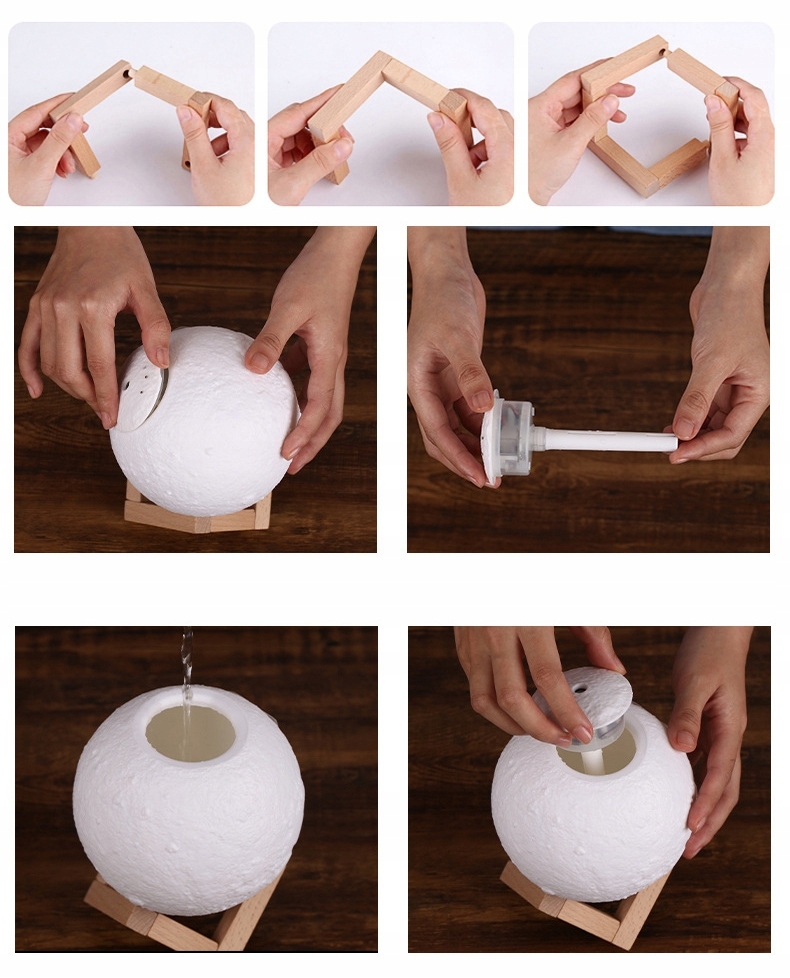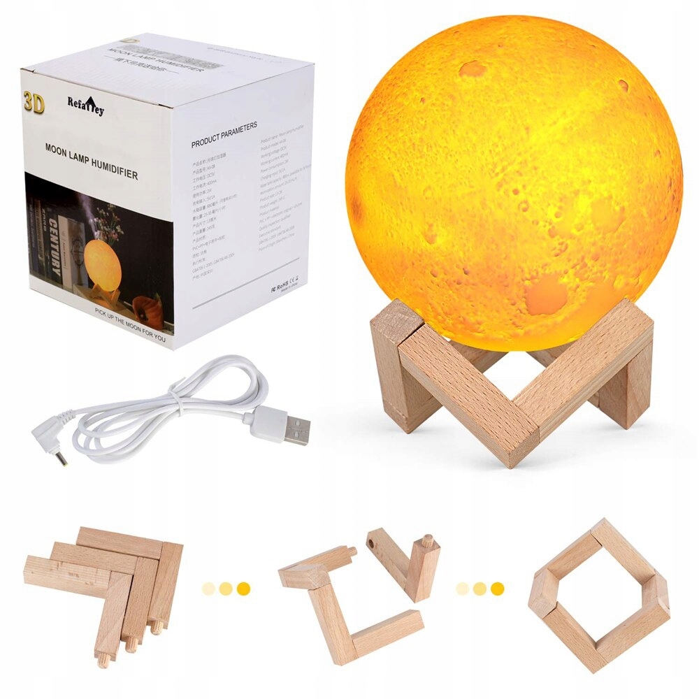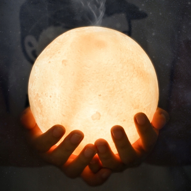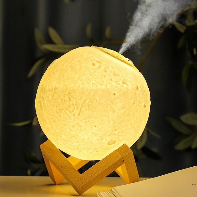 Овлажнител на въздуха с формата на луна съчетан с LED лампа.