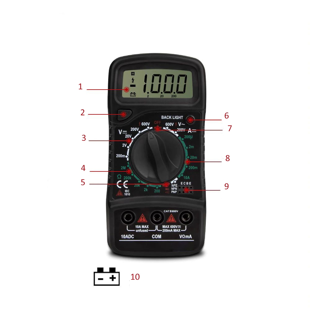 Дисплей: 16 мм LCD с подсветка с максимално отчитане 1999