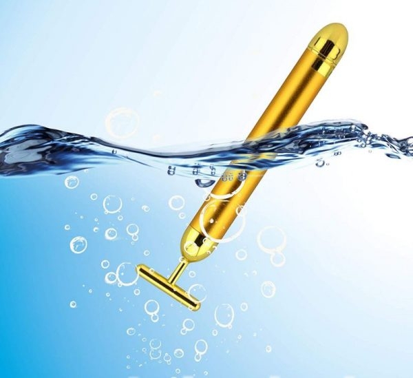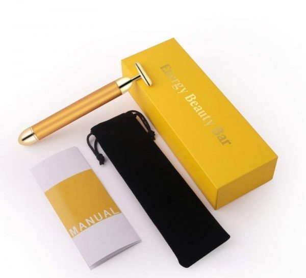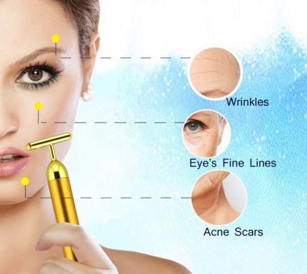 Масажора за лице против бръчки е вибрационно масажиращо устройство с Т- образен позлатен връх, което помага за повдигане и изглаждане на контурите на лицето.