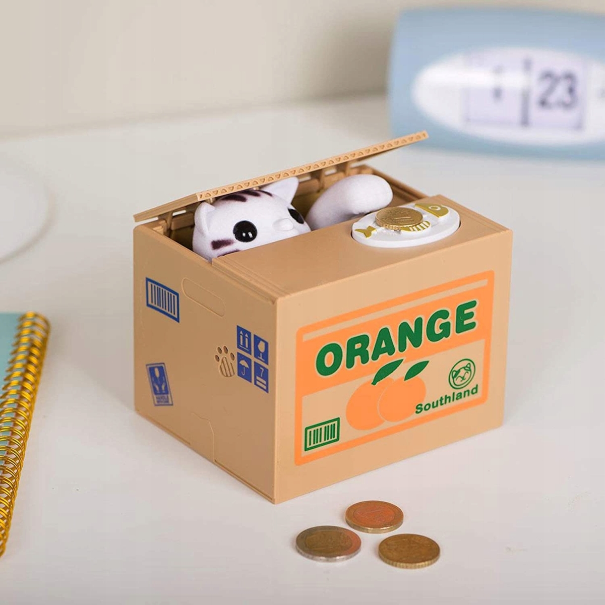 Касичката с котенце MM8805 е забавен и оригинален начин да съхранявате монетите си и да научите децата на пестеливост. Това красиво и ръчно изработено устройство представлява котенце, което „поглъща“ монетите, когато ги поставите върху подноса.