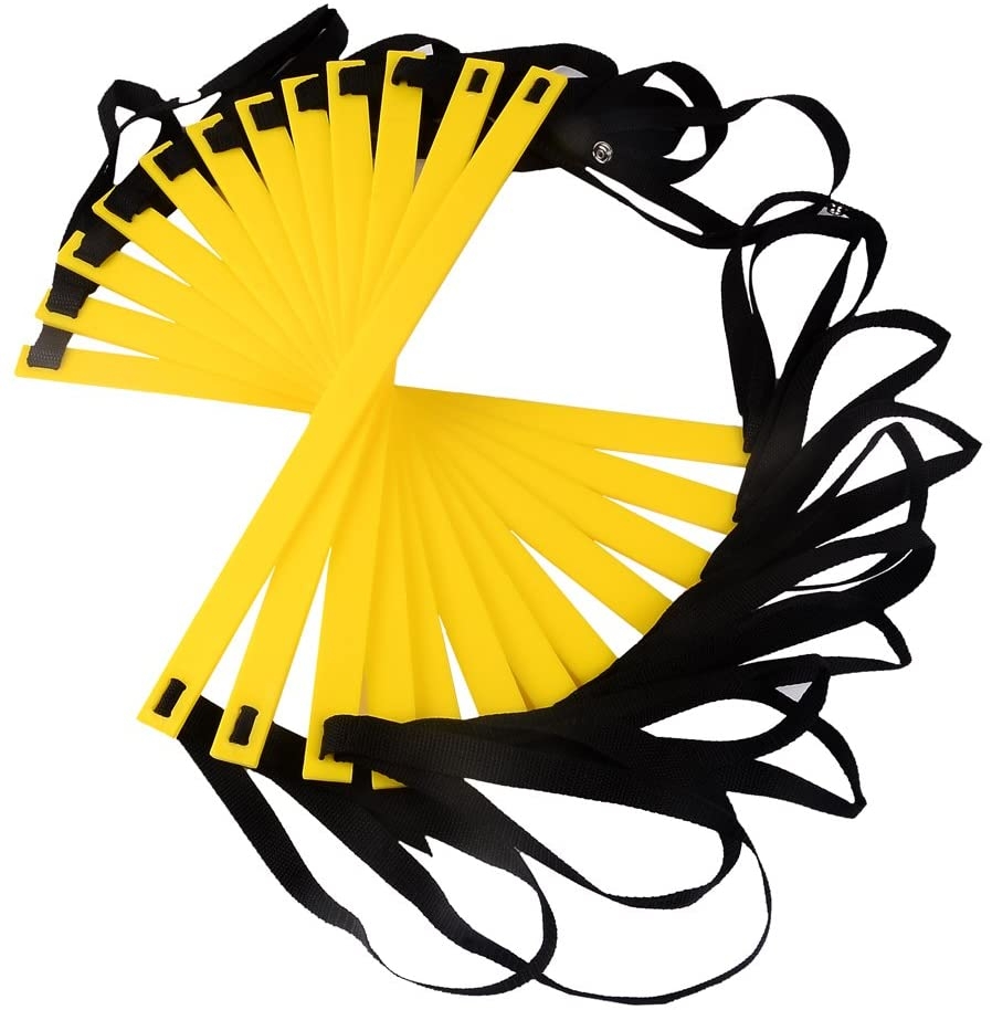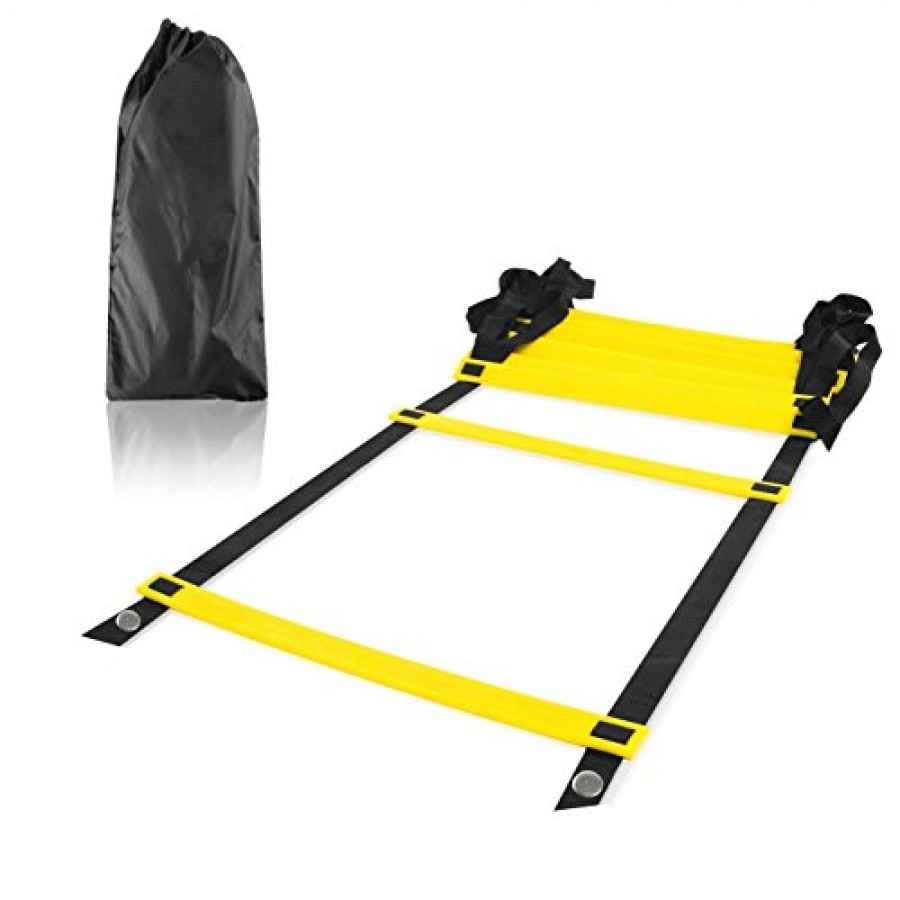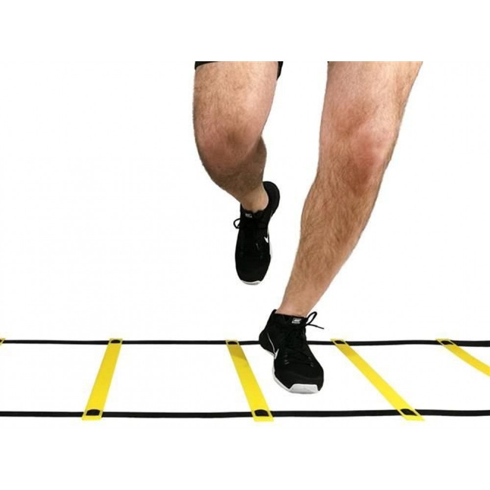 Тренировъчна стълба – координацията е уред, който развива скорост, ускорение, ловкост и контрол върху тялото. Позволява ви да работите върху скоростта, докато развивате двигателната координация, както и подобрявате баланса и контрола върху тялото по време на двигателни задачи. Може да се използва във всеки спорт, както на закрито, така и на открито. Страхотен начин да разнообразите всеки спортен заек за деца и възрастни. Разстоянието между стъпалата се конфигурира свободно. Стълбата се състои от 12 стъпала. Комплектът включва удобна чанта – калъф за носене. Основният въпрос при изпълнение на упражнения на стълбата е възможно най-краткото време за контакт на стъпалото със земята. Състезател с по-бързо движение на крака ще има по-бързо време за реакция на стимули и способност да променя посоката на движение по-бързо. Упражнявайки се по координационните стълби, ние учим мускулите си да реагират бързо и точно, което от своя страна ще ни даде отлични резултати по време на спортни състезания. Стълбата ни дава възможност да изпълняваме огромен брой упражнения, които можем да модифицираме, подобряваме или създаваме напълно нови упражнения.