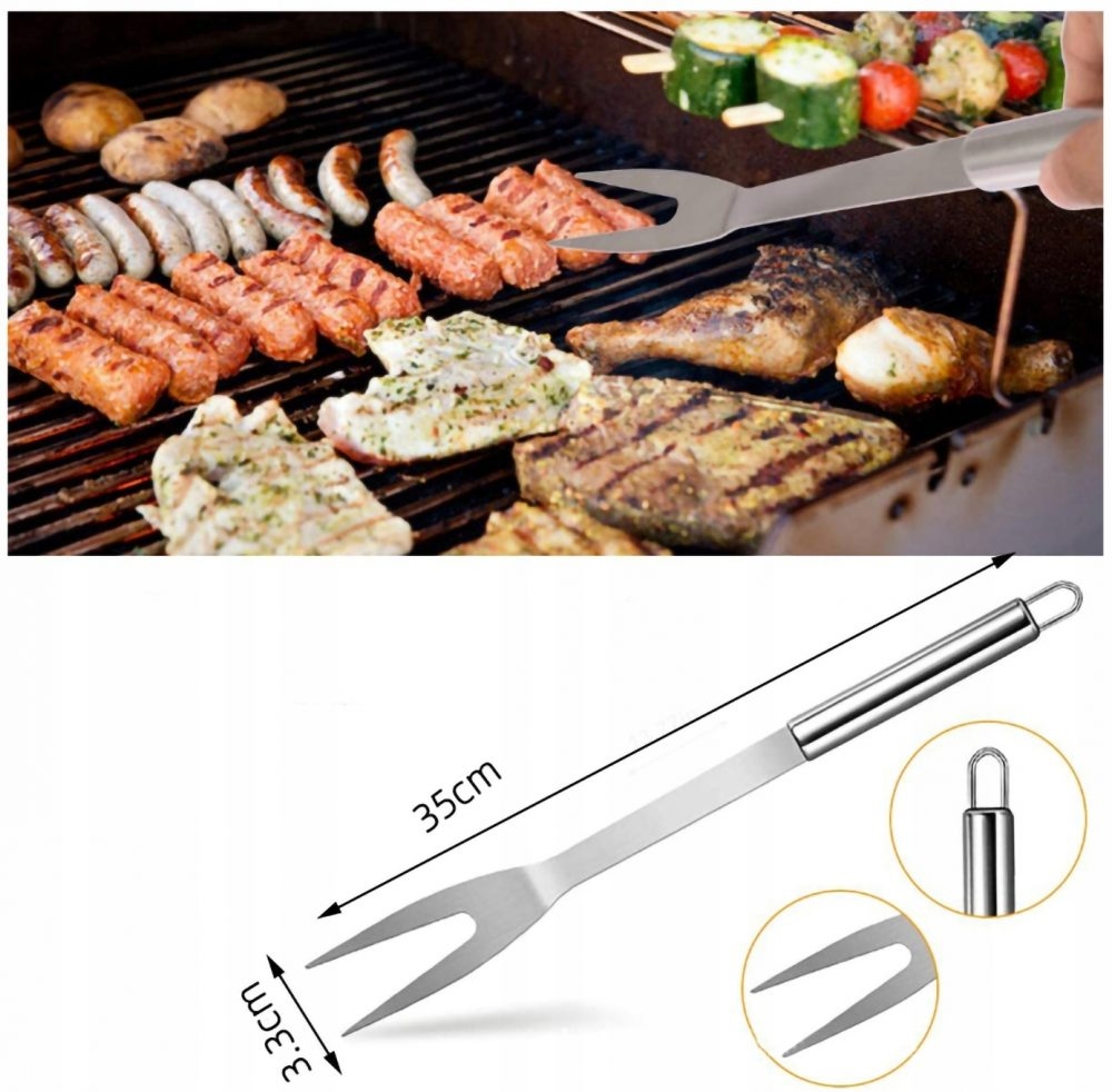 Дългата и здрава вилица за месо ви позволява лесно да натъпчете всякакъв вид месо. Остри върхове лесно се забиват в кренвирши, вратове или бутчета. Материалът, от който са изработени е устойчив на високи температури и не предава вкусове и миризми (за разлика от аксесоарите от дърво или пластмаса).