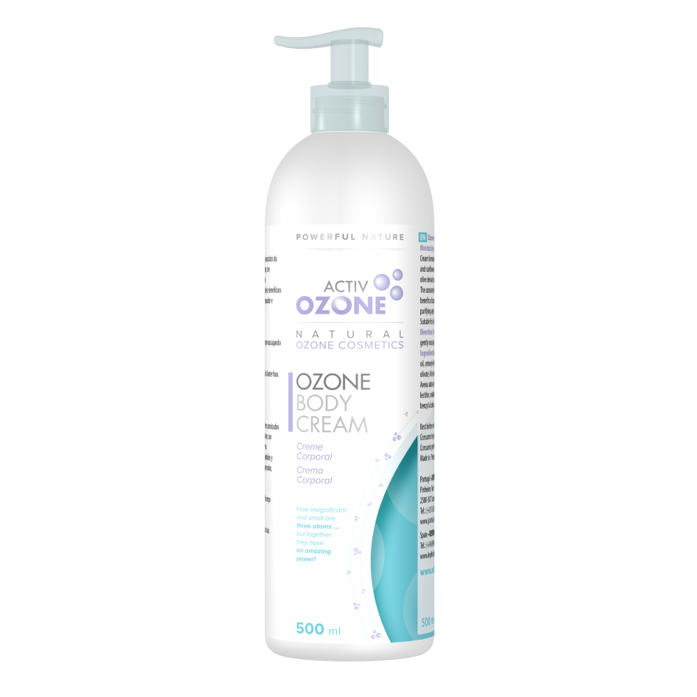 Кремът за тяло Active Ozone съдържа внимателно подбрана, много добре балансирана комбинация от озонирани масла, слънчоглед и маслина, които притежават много от свойствата на озона. Ефективно възстановява, успокоява и овлажнява кожата в дълбочина. Дериватите от маслина притежават силни хидратиращи свойства. Сокът от алое вера подпомага регенерацията на дермалните клетки и успокоява възпалената и наранена кожа. Това негово действие се допълва и от екстракта от овес.