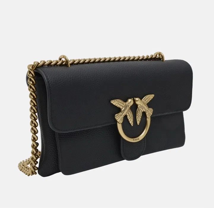 Оригиналната Pinko Leather Shoulder Bag в класически черен цвят е луксозна дизайнерска чанта, изработена от 100% естествена кожа, подходяща както за ежедневието, така и за специални поводи. Моделът впечатлява със стилните златисти метални елементи и елегантната верижна презрамка, която позволява носене на рамо или като crossbody. Чантата разполага с магнитен капак и функционално вътрешно разпределение – основно отделение, вътрешен джоб с цип и отворен джоб, които осигуряват отлична организация. С размери 27 x 17 x 8 см, моделът е компактен, но просторен. Чисто нов артикул, подходящ за любителите на оригинални дизайнерски аксесоари и идеален за подарък. Перфектен избор за всяка дама, която търси луксозна чанта Pinko, стил и високо качество.
