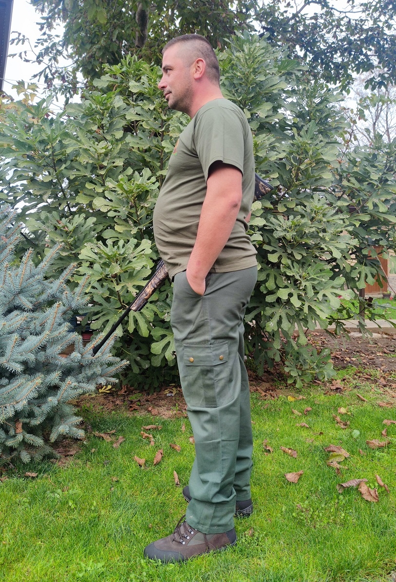 Ловни панталони от Канвас,перфектният избор за сезон пролет/есен. Изработени с грижа и внимание към детайла, тези панталони предлагат функционалност и стил. Двата италиански джоба придават нотка практичност, позволявайки ви да имате под ръка необходимите аксесоари по време на вашите приключения на открито Двата странични джоба с капаци и копчета придават съвременен дизайн.Задният джоб добавя допълнителна практичност,като осигурява допълнително място за важни дребни предмети.На талията има ластик,осигуряващ комфорт на всяко движение.С нашите ловни панталони ще имате не само идеалния външен вид за приключение на открито,но и комфорт и функционалност.