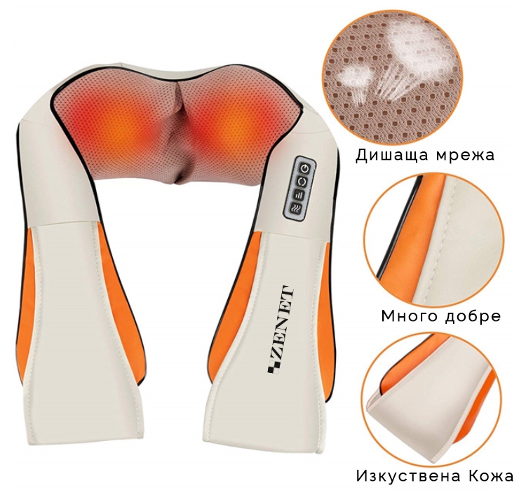 Ролков масажор за врат ZENET ZET-757 с нагряване е практично решение за отпускане на мускулите на врата, раменете и гърба в домашни условия или в автомобила. Уредът използва шиацу масаж с въртящи се ролки, които имитират движенията на масажист, а функцията за нагряване допринася за по-приятно и релаксиращо усещане. Подходящ за хора със заседнал начин на живот, продължителна работа пред компютър или често шофиране. Лесен за използване, компактен и удобен за пренасяне.