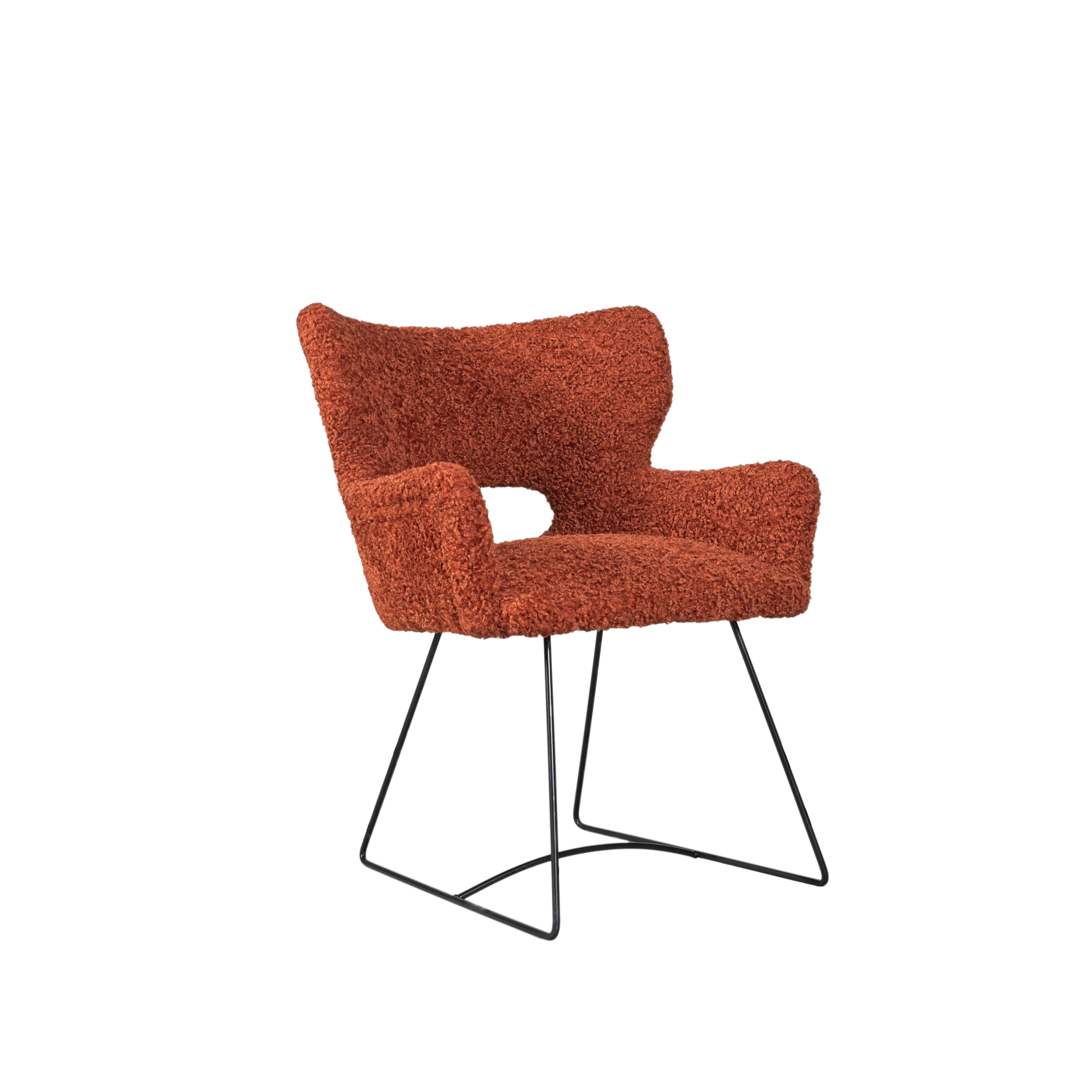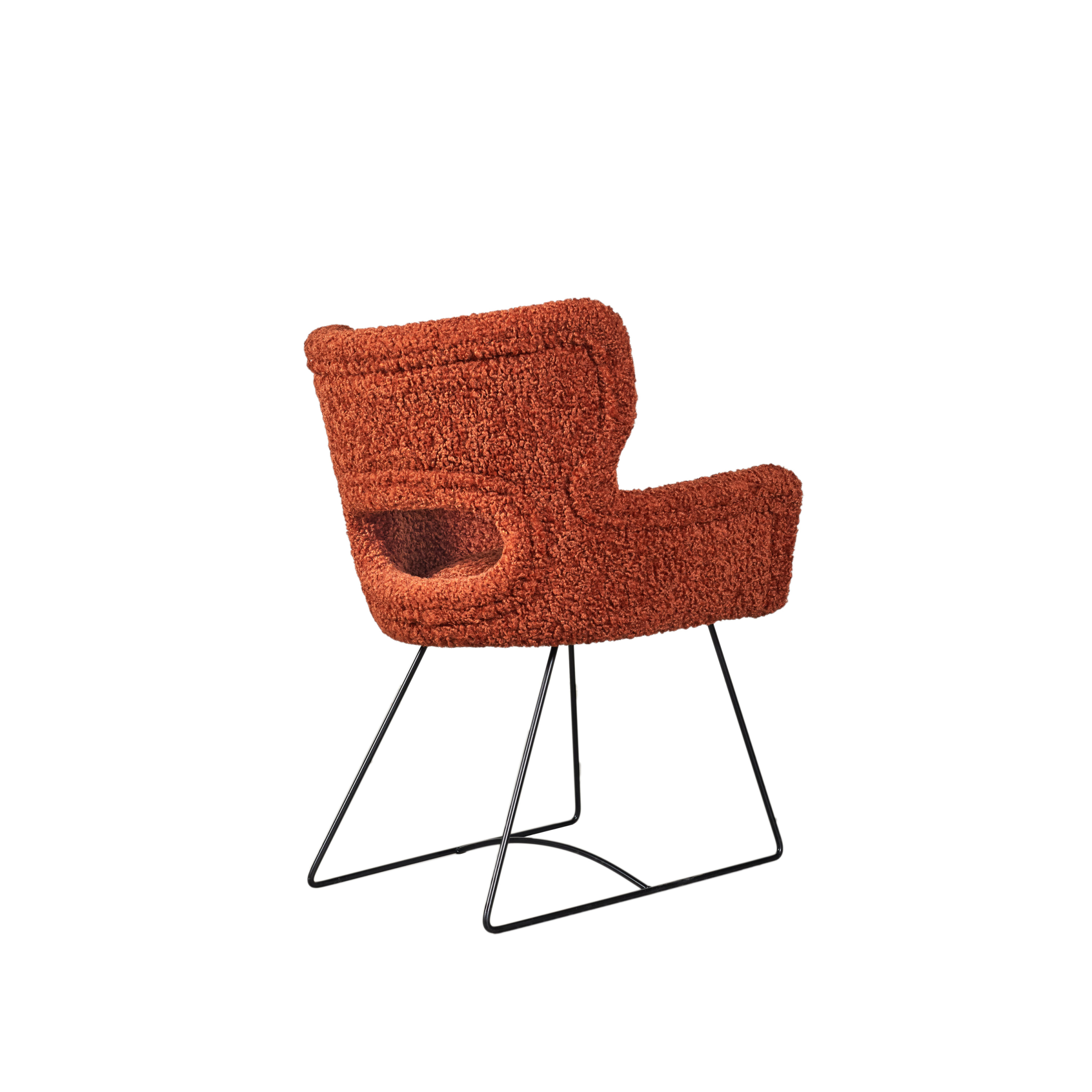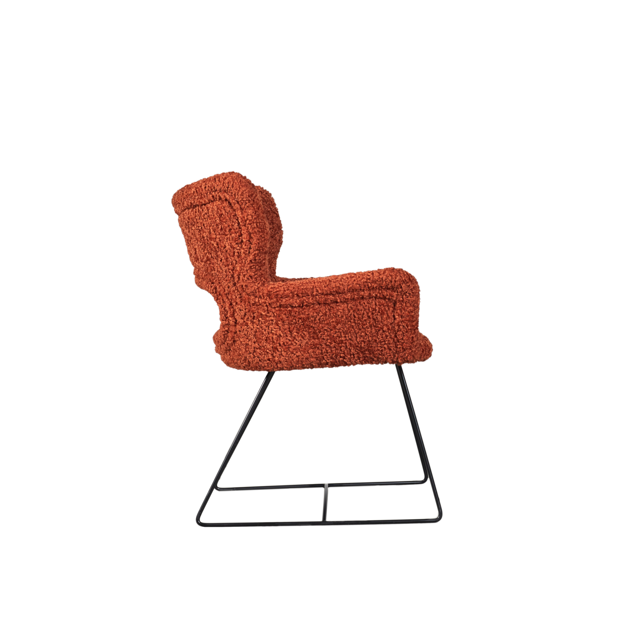 Изработен със завладяваща дамаска в луксозна текстура букле и елегантни черни стоманени крака, които добавят съвременна нотка, създавайки перфектен баланс на елегантност и функционалност.