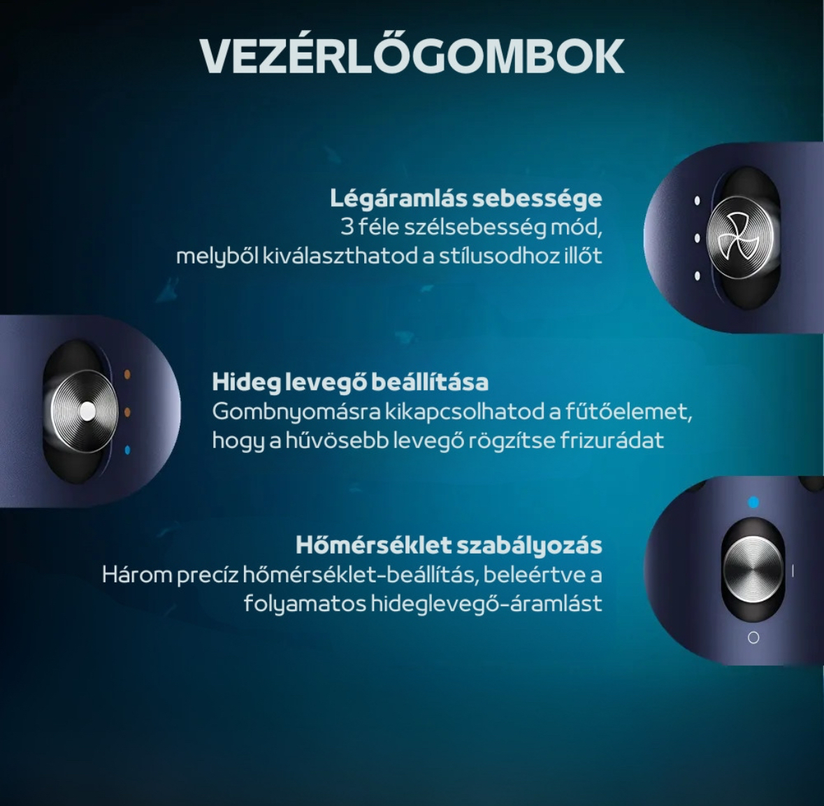 • Студен въздух за фиксиране на прическата